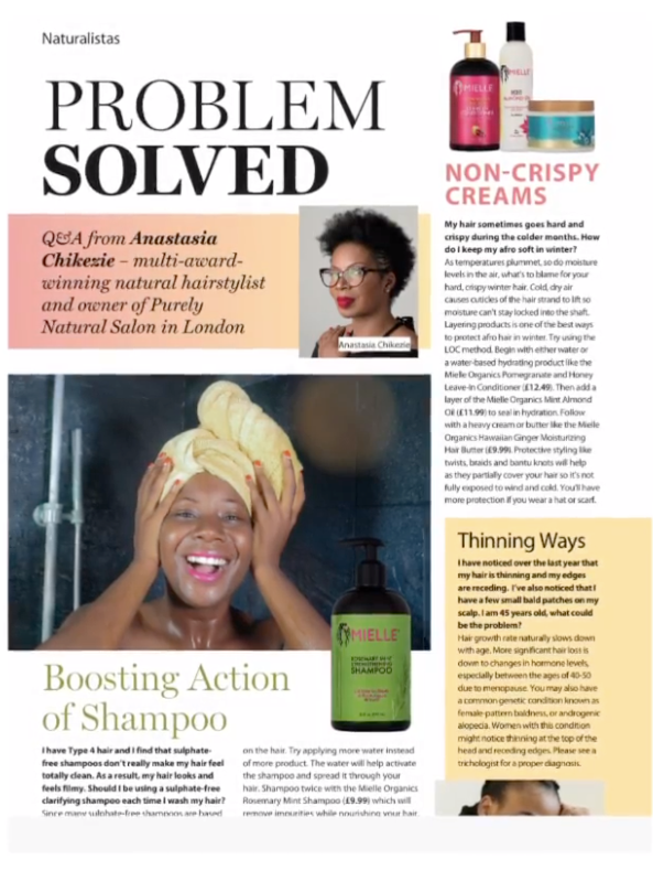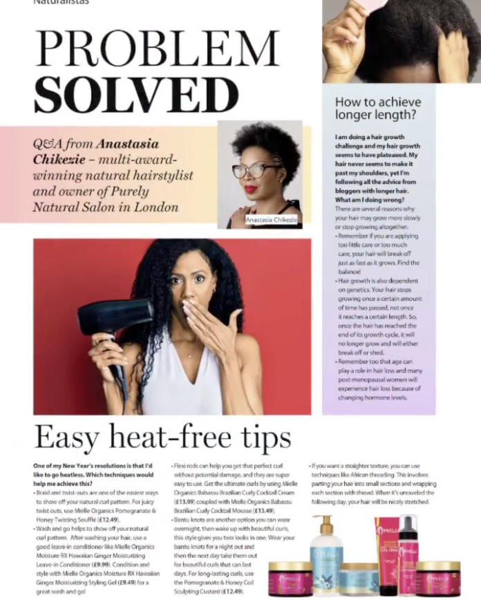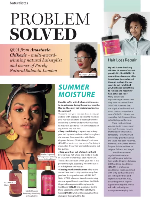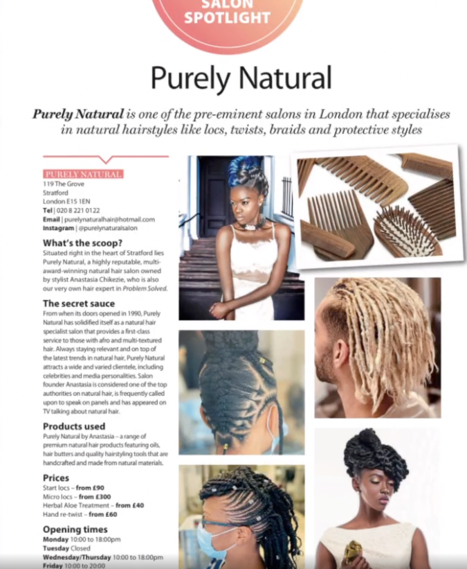 Anastasia Chikezie is the founder of PURELY NATURAL one of the first natural hair salons to open in the UK. The first branch was opened 24 years ago, June 1990 to be exact!